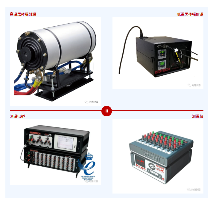 温度计量仪器:黑体辐射源、测温电桥、测温仪、干体炉等。